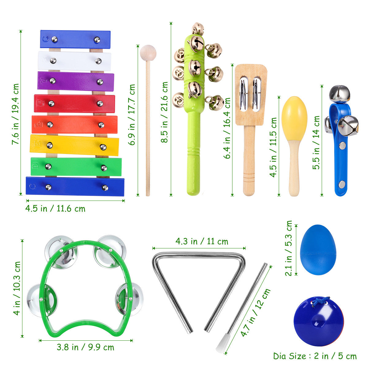 Do you want to training your kid's ability on music? Are you looking for a kind of educational toy that can also entertain your kids? Our product will be an excellent choice. It is a set of musical instrument including 15pcs different percussion toys. This complete instrument set will be a perfect preschool educational toy for developing your kids' potential.