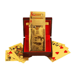 This eye-catching set of 24-karat-gold playing cards will always make you look like a winner during game night. Each of the 54 cards is covered in certified 99.9% 24-karat-gold foil for an opulent look. This set includes 52 standard cards and 2 Joker cards presented in an exquisite mahogany case to keep the cards in perfect condition (case is optional). Get today's deal for your king of hearts and add this conversation starter piece for your home or office today!