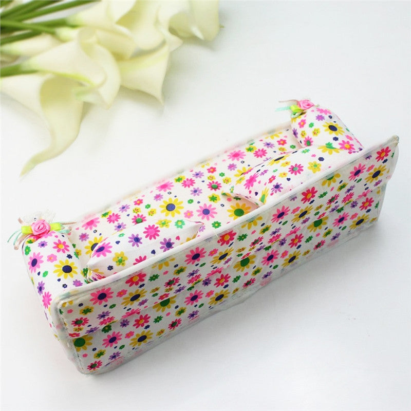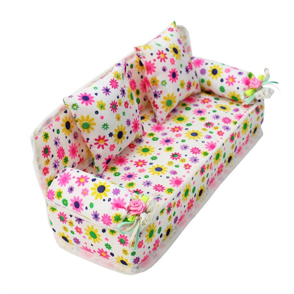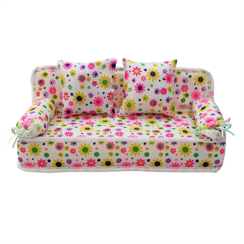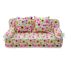 Lovely Miniature Furniture Flower Print Sofa Couch with 2 Cushions