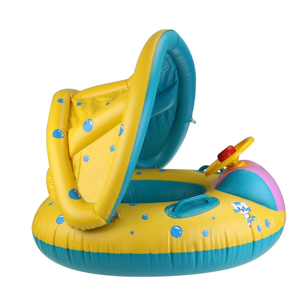 - Baby float boat includes UPF 50+ sunshade,large outer flotation ring and two handles for stability,and a reinforced safety seat.