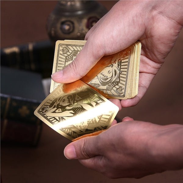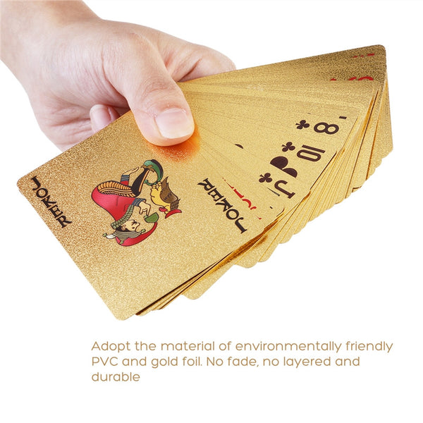 Are you looking for a both high-end and durable playing cards to spend your spare time? This pocker cards set is made of environmentally friendly PVC material with gold foil surface. They can not only be used for poker game playing, but also a collection choice for home decoration.