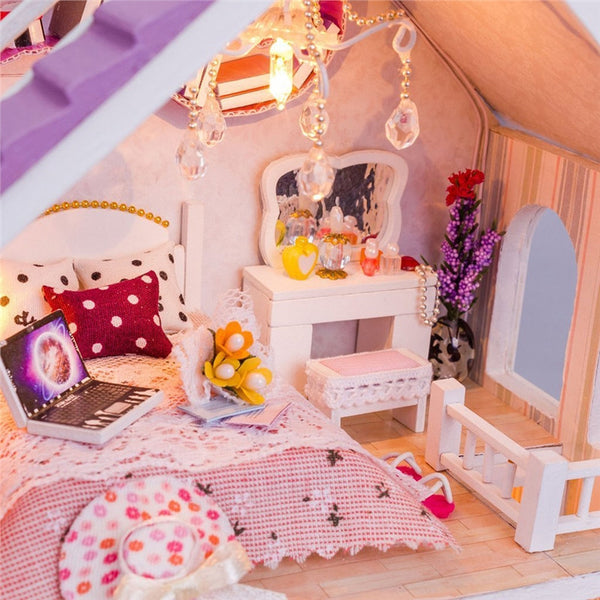 DIY Wooden Dolls house Romantic Purple Miniature Kit