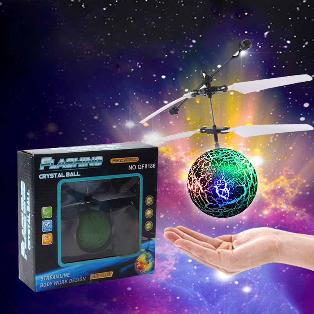 - It is like a toy helicopter but instead of the usual helicopter cabin and body it features a clear glass ball. When you turn on it, it will emitting a brilliant light, very beautiful!