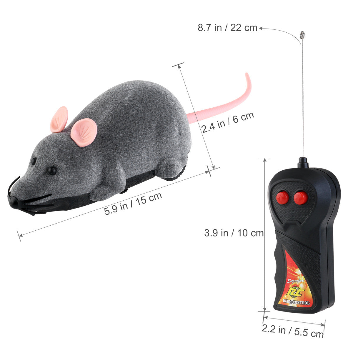 Remote Control Mouse Toy have realistic appearance, for have flocking cover and tail. What a cool concept this is, a remote control mouse! Imagine all the fun you can have teasing your cat or scare your spouse. This is a realistic looking mouse with a two channel control. It has a manufacturer rating of 20 meters. Get yours today and have a load of fun teasing whoever is around.